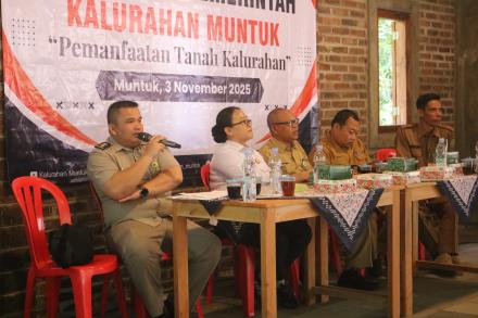 Lurah Muntuk, dalam sambutannya menyampaikan bahwa sosialisasi ini sangat penting mengingat status tanah di Kalurahan Muntuk banyak yang enclave, sehingga pemanfaatannya harus menyesuaikan aturan yang berlaku. Selanjutnya, kegiatan sosialisasi diisi dengan diskusi dan tanya jawab terkait persoalan yang ada di Kalurahan Muntuk, terlebih dalam mengurus perizinan pemanfataan tanah kas desa.