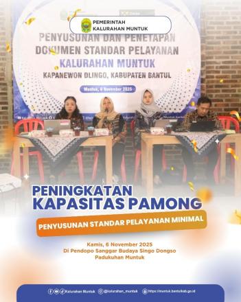 Muntuk, Dlingo – Dalam upaya mewujudkan pelayanan publik yang prima dan tata kelola administrasi yang tertib, Kalurahan Muntuk menyelenggarakan pelatihan bagi seluruh pamong dan Badan Musyawarah Kalurahan (Bamuskal). Kegiatan penting ini mengangkat tema "Penyusunan Standar Pelayanan Minimal (SPM)" dan berfokus pada peningkatan mutu pelayanan serta ketertiban administrasi kalurahan.